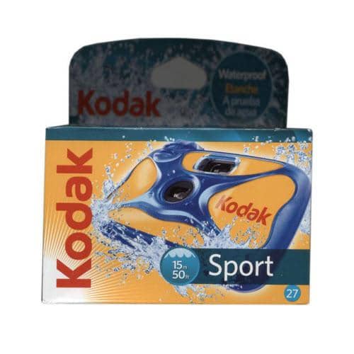 Kodak Sport Disposible Camera, 27 Exposure, Waterproof up to 50 feet (Discontinued by Manufacturer) A One-Time-Use camera made to survive where a regular camera won't! Made with a rugged, durable and shock-proof frame; waterproof down to 50 ft. (15 m); scratch-resistant lens, this disposable camera can be used in virtually any outdoor land or water situation. Kodak MAX Versatility Plus Film brings picture quality to a new level by combining the color quality, fine detail, and picture clarity of lower-speed films with the benefits of higher speed films. This film delivers extra sharpness and unsurpassed fine grain (among 800-speed films) for crisper, clearer pictures, even when enlarged. Kodak MAX Versatility Plus Film produces consistently bright, vibrant colors across a wide range of lighting conditions. It provides accurate skin-tone reproduction for natural-looking "people pictures."