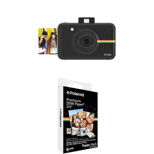 Polaroid Snap Instant Digital Camera (Black) with Polaroid 2x3 inch Premium ZINK Photo Paper TWIN PACK (20 Sheets) Polaroid Snap is the brand's newest addition to its expanding instant digital camera line, delivering signature Polaroid instant simplicity and spontaneity in a pocket-sized form factor and at an affordable price point. In addition to its compact footprint and classic Polaroid instant camera experience, it combines digital imaging with Zero Ink printing. This enables you to easily print and share physical photos at the push of a button, while saving all your images for easy uploading.