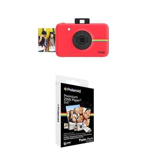 Polaroid Snap Instant Digital Camera (Red) with Polaroid 2x3 inch Premium ZINK Photo Paper TWIN PACK (20 Sheets) Polaroid Snap is the brand's newest addition to its expanding instant digital camera line, delivering signature Polaroid instant simplicity and spontaneity in a pocket-sized form factor and at an affordable price point. In addition to its compact footprint and classic Polaroid instant camera experience, it combines digital imaging with Zero Ink printing. This enables you to easily print and share physical photos at the push of a button, while saving all your images for easy uploading.