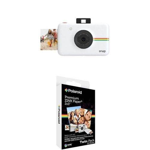 Polaroid Snap Instant Digital Camera (White) with Polaroid 2x3 inch Premium ZINK Photo Paper TWIN PACK (20 Sheets) Polaroid Snap is the brand's newest addition to its expanding instant digital camera line, delivering signature Polaroid instant simplicity and spontaneity in a pocket-sized form factor and at an affordable price point. In addition to its compact footprint and classic Polaroid instant camera experience, it combines digital imaging with Zero Ink printing. This enables you to easily print and share physical photos at the push of a button, while saving all your images for easy uploading.