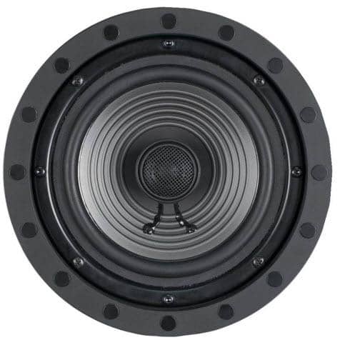 To save floor space, the Architect 6.5" 2-Way Round Kevlar 2-Way Round Premium Series In-Ceiling/Wall Loudspeaker can provide surround sound without fighting furniture for room. These 2-way speakers use a nominal 40W and maximum 80W, and use a poly woofer with butyl surround. Its frameless grill may be painted to match its mounting surface. This speaker has an 8ohm impedance and a sensitivity at 91 dB. Its cutout dimensions are 7.25"W x 3.31"D, with an overall dimension of 8.44"H.