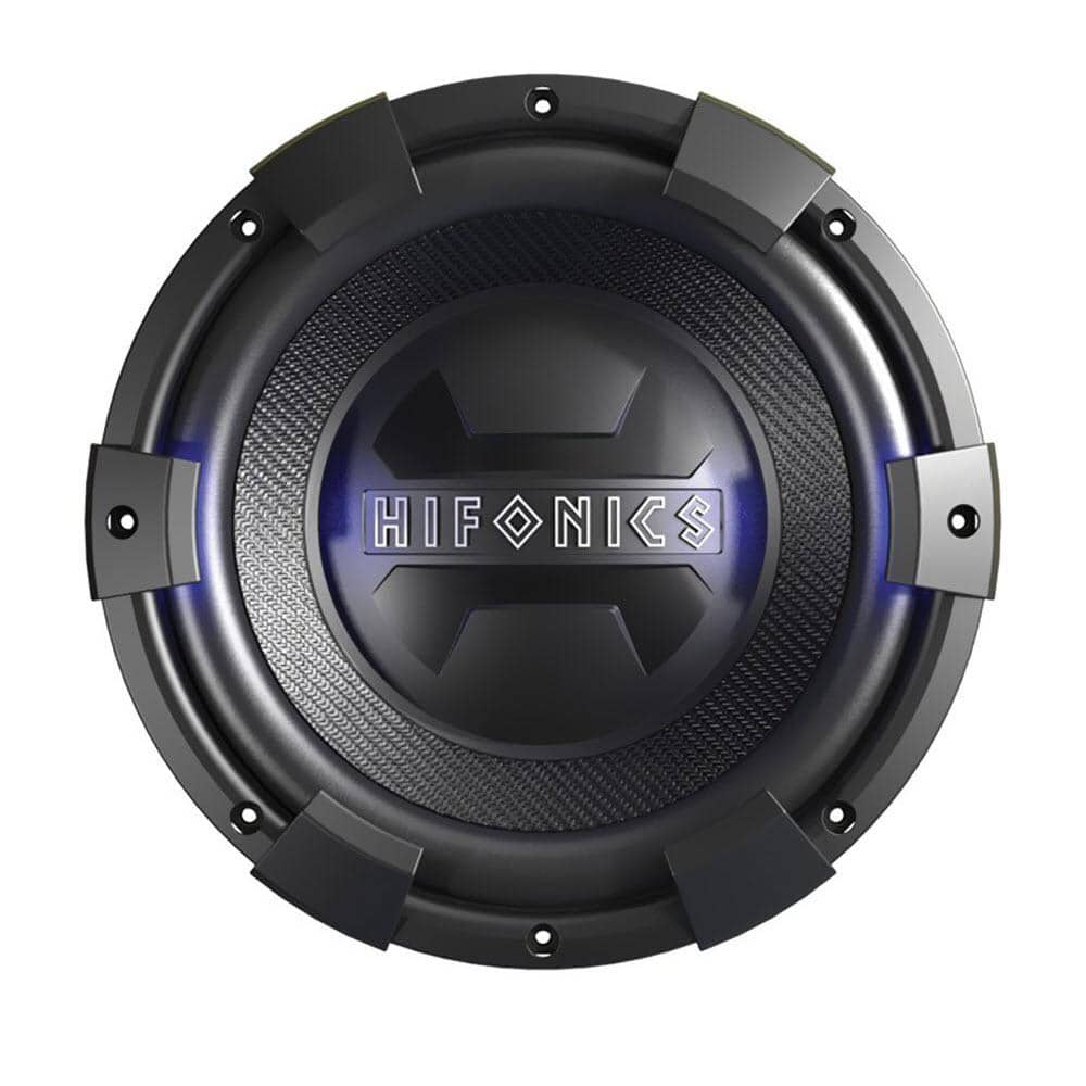 Hifonics BRX12D4 Brutus Dual Subwoofer, 4-Ohm 450-Watt 12-Inch 450W 12" Brutus Series Dual 4 ohm Subwoofer. Heavy duty ABS protective motor cap. Powder coated deep draw stamped steel basket. ABS rim ring with blue illumination. Dual resin infused textile spiders. Operates in sealed and ported enclosures. 2.5" High temperature voice coil. 56 oz Vented motor.