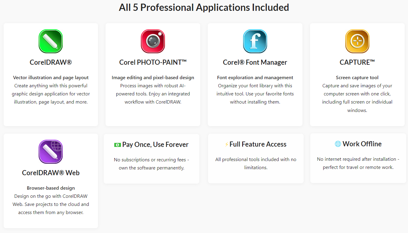 What sets CorelDRAW Graphics Suite 2022 apart from other graphic design software is its intuitive and user-friendly interface. It doesn’t matter if you’re a beginner or an experienced designer – you’ll be able to create professional-quality designs with ease. You’ll have access to CorelDRAW, a vector-based illustration software that allows you to create precise and scalable artwork, and Corel PHOTO-PAINT, a powerful image editing tool that lets you retouch, enhance, and manipulate photos.