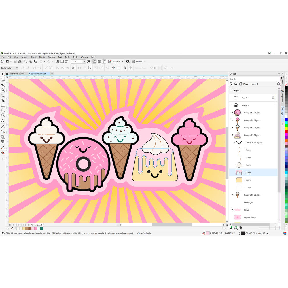Control every element in your document with a handy Objects docker, letting you hide, rename, and search for objects, as well as change their stacking order. Use the Object Properties docker to manage object formatting, fills, and more.Font Management